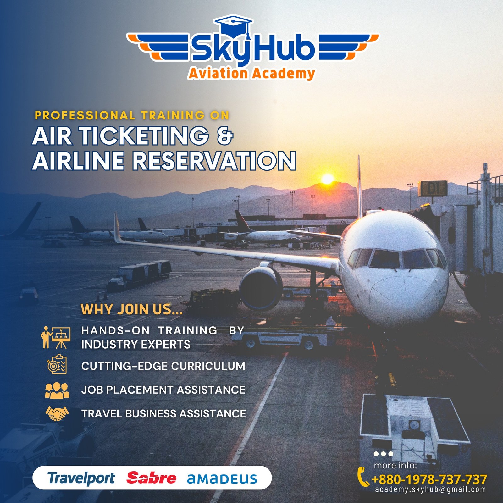 Welcome to SkyHub Aviation Academy, a premier aviation training institute based in Dhaka, Bangladesh, dedicated to shaping skilled professionals for the global aviation industry. In just two years, we’ve proudly guided over 700 students toward successful careers in airlines, travel agencies, and ground operations—both locally and internationally. With modern training facilities, an internationally aligned curriculum, and industry-experienced instructors, we offer a hands-on, career-focused learning experience tailored to meet the growing demand for aviation professionals across South Asia, the Middle East, and beyond. Whether you aim to become a GDS expert, airline reservation agent, or travel operations specialist, SkyHub Aviation Academy is your launchpad to a successful future in aviation. Join our passionate community and let your aviation journey take flight—from Bangladesh to the world.